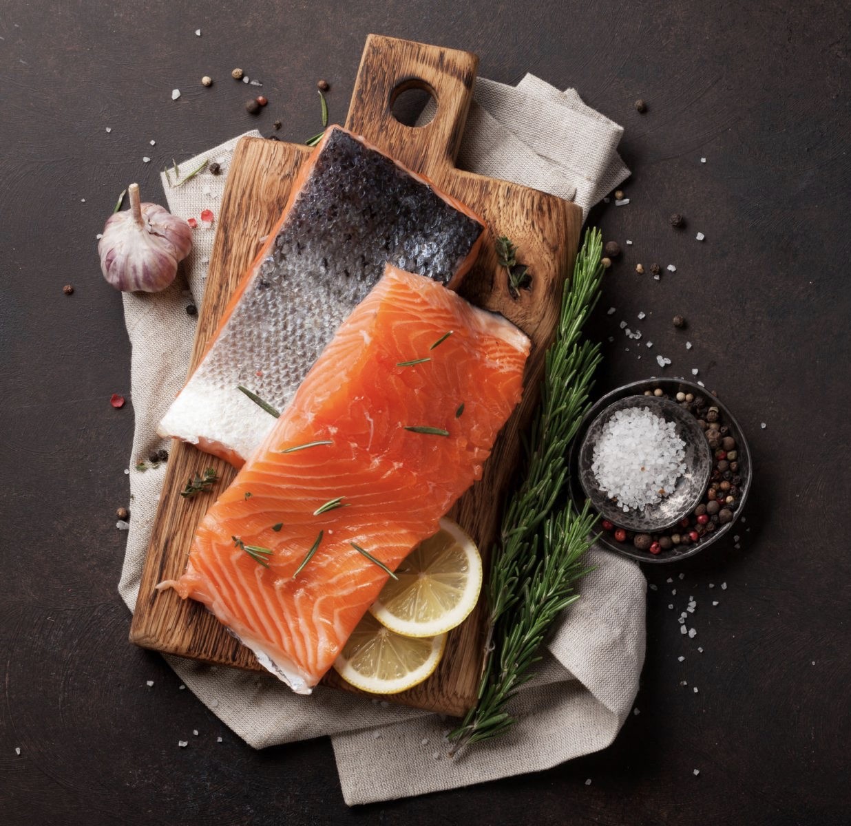 Lososa osušíme, pokapeme citronovou šťávou, lehce osolíme, okořeníme pepřem a rozmarýnem. Necháme 10 minut uležet v chladu.