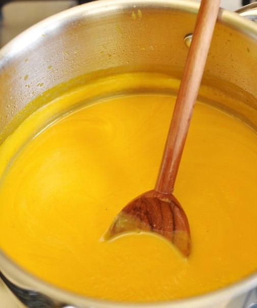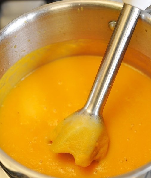 Dýňovou polévku rozmixujeme a ochutíme pepřem, solí a karí kořením.