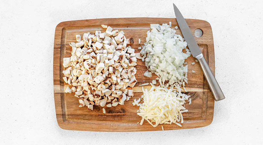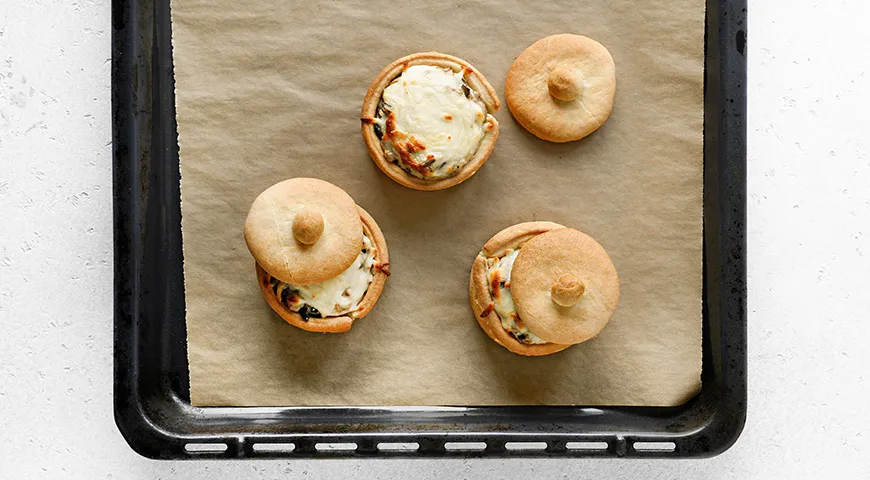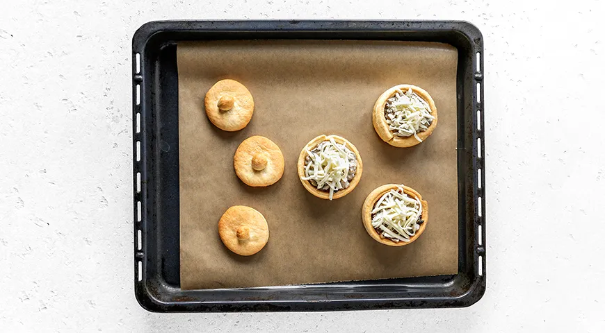Vytáhněte hrníčky ze svých podstavců a umístěte je na pečicí papír. Naplňte hrníčky julienne a posypte náplň sýrem. Vraťte je zpět do trouby a pečte, dokud se sýr pěkně nezezlátne, což by mělo trvat 7–10 minut. Buďte pozorní na víčka hrníčků – může být třeba je vyjmout o něco dříve, abyste předešli případnému připálení. |