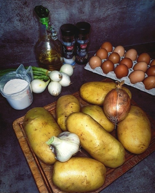 Syrové brambory oškrábeme, omyjeme a nastrouháme, vodu částečně slijeme. Strouhané brambory ochutíme soli a pepřem, přidáme nastrouhanou cibuli, česnek, vajíčka, majoránku, podle potřeby mouku.