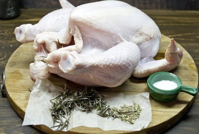 Kuře důkladně opláchneme, osušíme a naporcujeme, pokapeme sojovou omáčkou, osolíme a opepříme a přidáme rozmarýn.