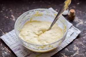Od žloutku oddělíme bílek a z bílků vyšleháme sníh. Žloutek s cukrem rozmícháme v mléce. Mouku s pražském do pečiva vmícháme do mléka s žloutkem a přidáme olej.