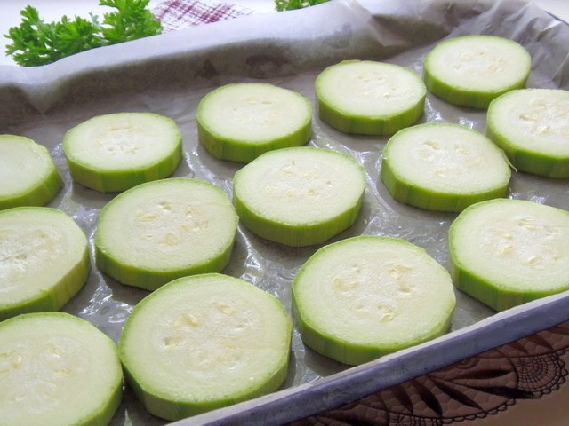 Nakrajime cukety na plátky a dame je do misy. Přidame olej, sul, kajensky pepř a kořeni na gril.