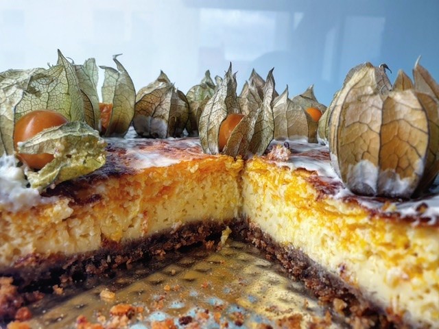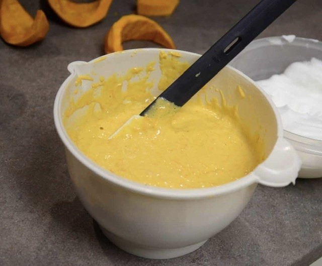 Sušenky umeleme v mixeru z vejcem, měkkým máslem, citronovou kůrou a vytvoříme těsto, které vmačkáme do dortové formy.