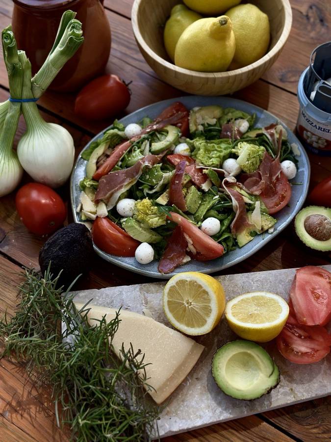 Letní osvěžení s jamónem je lehký a svěží salát ideální pro teplé letní dny. Spojuje krémovost avokáda s výraznou chutí jamónu, čímž vytváří dokonalou harmonii chutí. Je to rychlý a jednoduchý pokrm, který osvěží a zasytí.